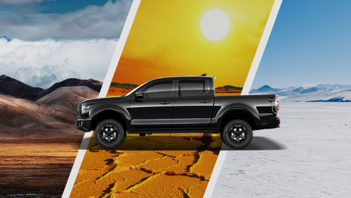 真正的“全球版”,意味著要征服更多極端環(huán)境。新車應用的三高適應性技術,能輕松應對高溫、高原、高寒等極端環(huán)境。專項配備850W高性能散熱風扇,匹配行業(yè)首創(chuàng)越野熱管理模式,炎炎夏日即使大負載長途穿越,也無需擔心。此外在高原地區(qū),海拔4700米仍可實現400N·m扭矩,高原穿越無壓力;采用AGM大容量蓄電池,容量高達92Ah,電容穩(wěn)定性、低溫可靠性更高,即使面對北方寒冬,冷啟動也可以一鍵搞定!